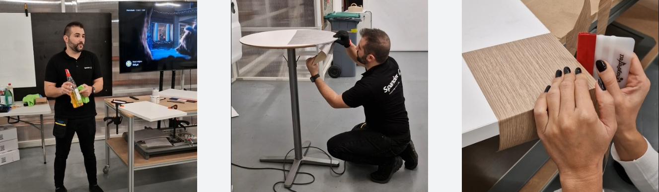Este evento iniciou com uma apresentação dos materiais da CoverStyl, vinil destinado a decoração e arquitetura. Também foram apresentadas as oportunidades de negócio deste material, bem como as últimas novidades. A parte teórica foi liderada pelo Eng. José Mota, General Manager da Spandex Portugal. Em seguida, o especialista em aplicações da Spandex Portugal, Julio Montero, realizou a parte prática, ensinando técnicas de aplicação em superfícies planas, redondas e cantos. Foram ainda explicadas técnicas de união de vinil e de remendo.
